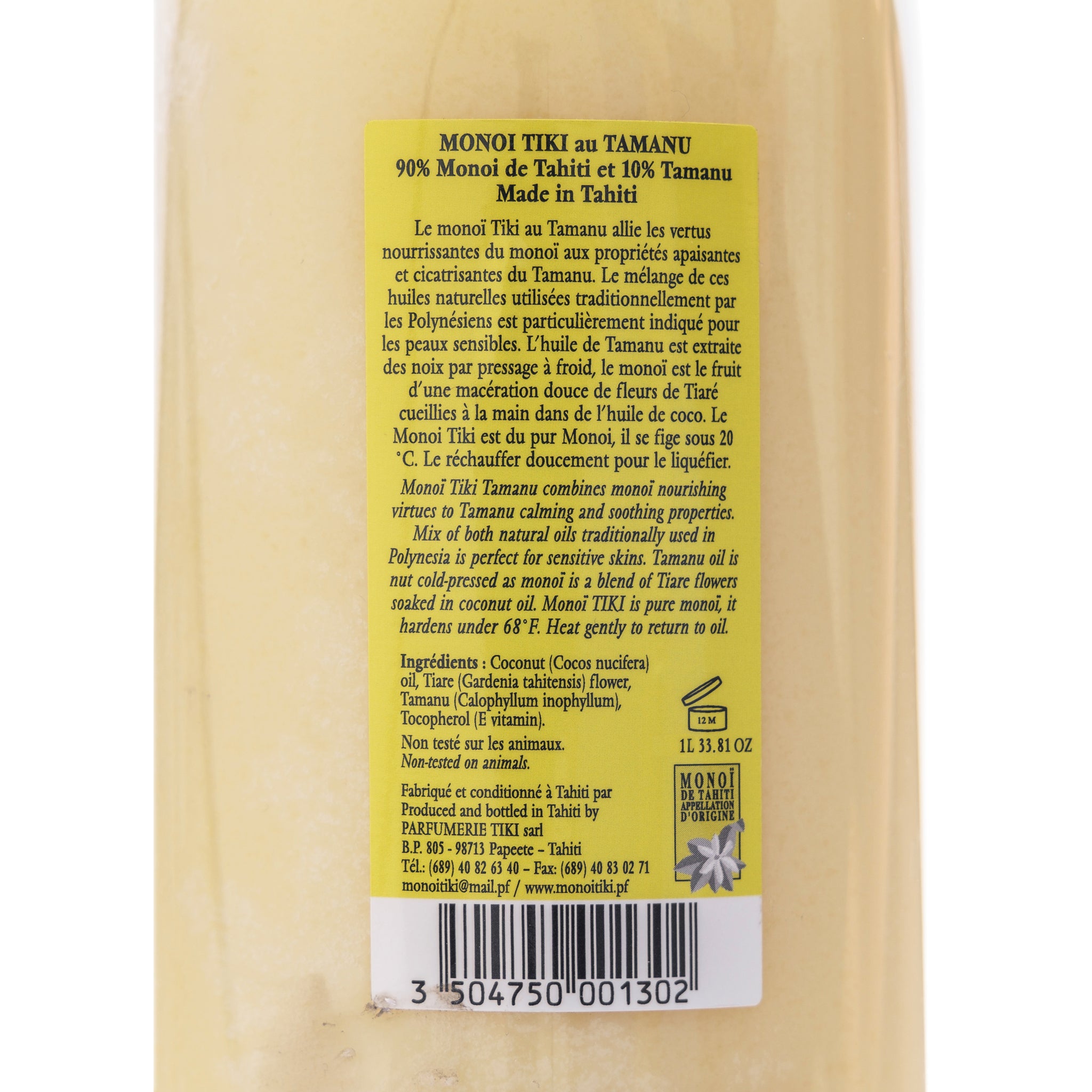 - Matière: 99% Monoï de Tahiti Appellation of Origin (AO). Cocos nucifera (coconut) oil, Gardenia Taitensis Flower Extract, Parfum (Fragrance), Tocopherol (Vitamin E).