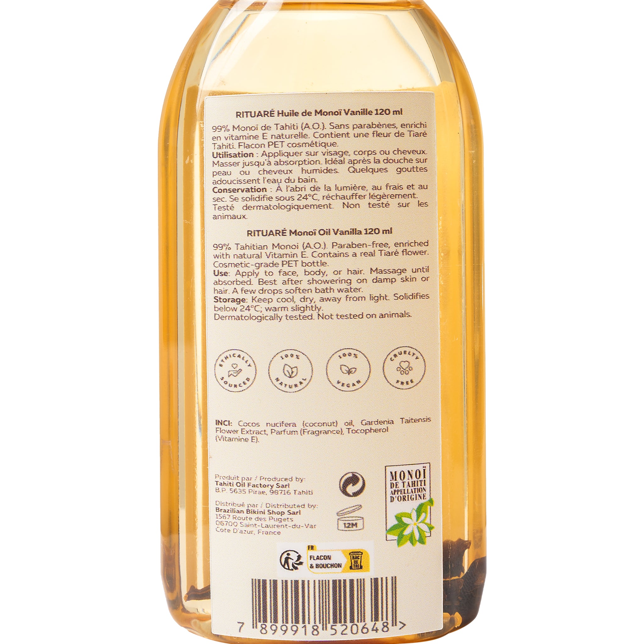 Product Back: Rituare Monoi Oils Monoi Vanille Flacon 120 Ml