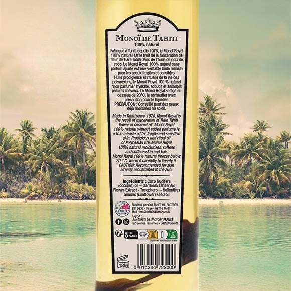Product Back: Monoï Royal Solaire Royal Monoi 100% Natural 100 Ml Glass Bottle