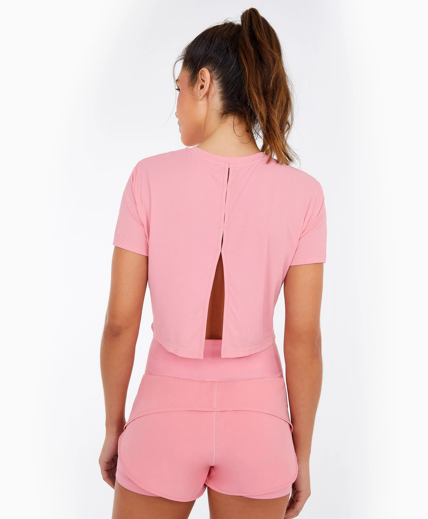 Regata Skin Fit Alongada Gola V Rosa Soft