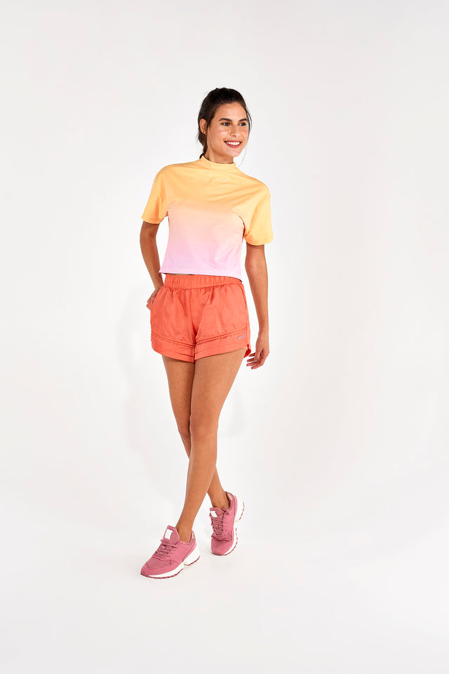 Model Back: Alto Giro Fitness Haut T-Shirt Sunset Amarelo Amber